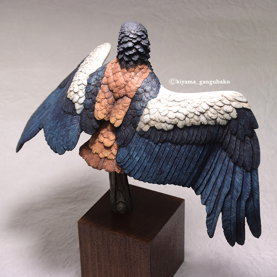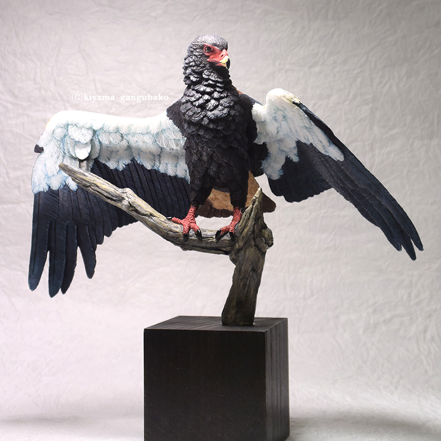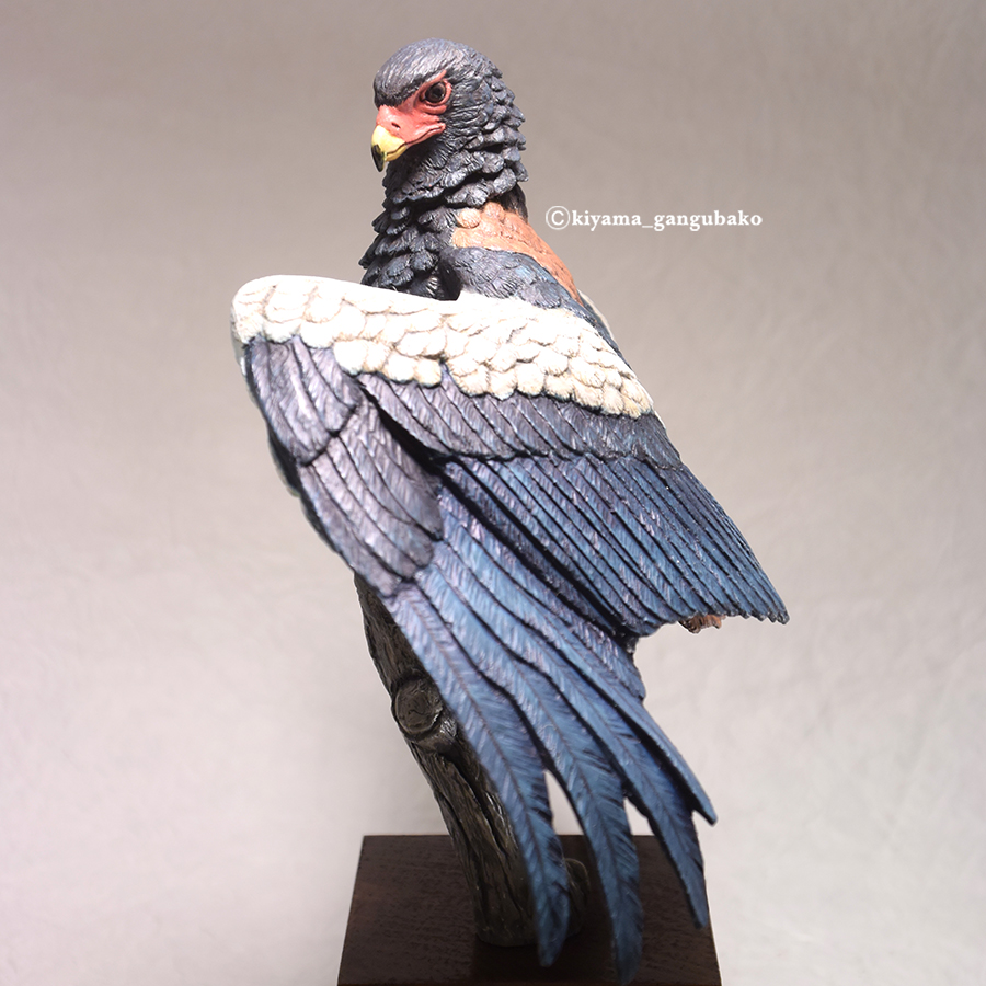 真っ赤な顔と、背中のカラーリングが特徴的なアフリカの鷲です。