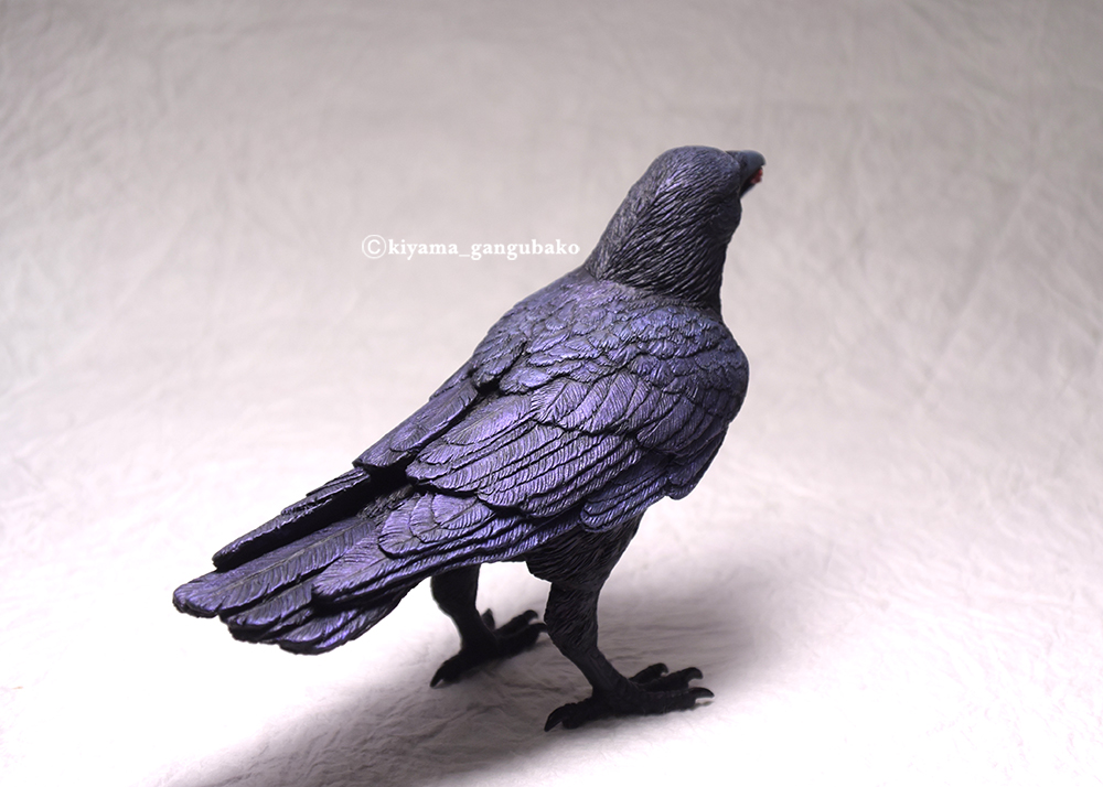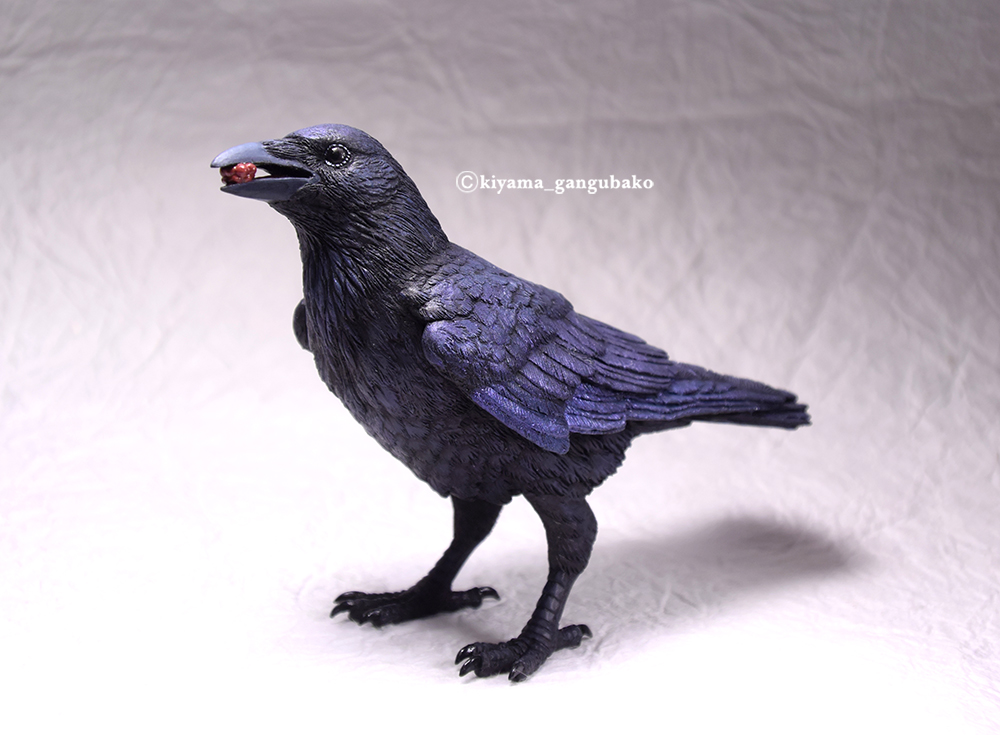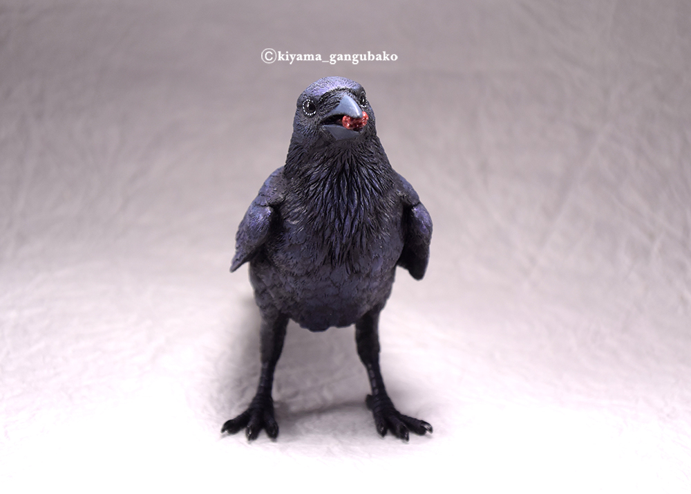 細い嘴と、落ち着いた羽根色が特徴的なハシボソガラスです。