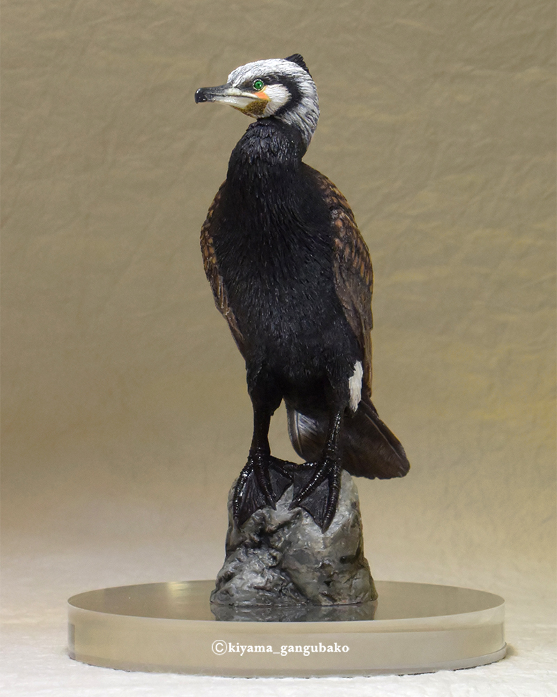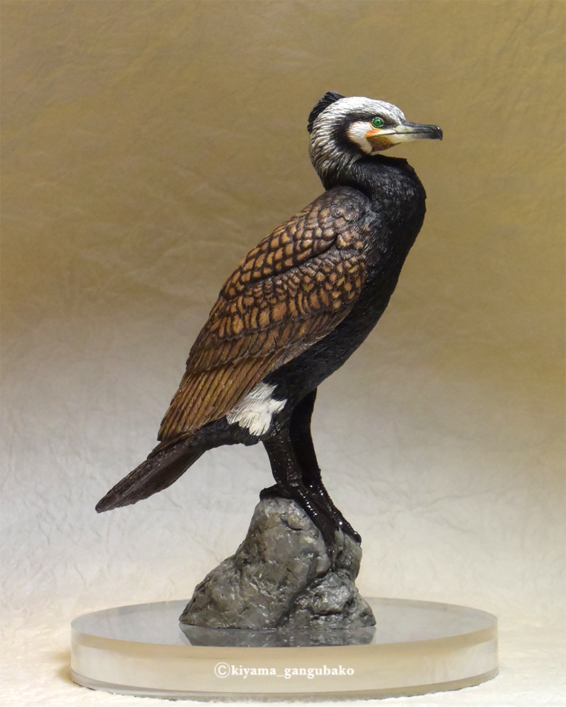 潜水の得意な水鳥、カワウの婚姻色(繁殖期の姿)です。